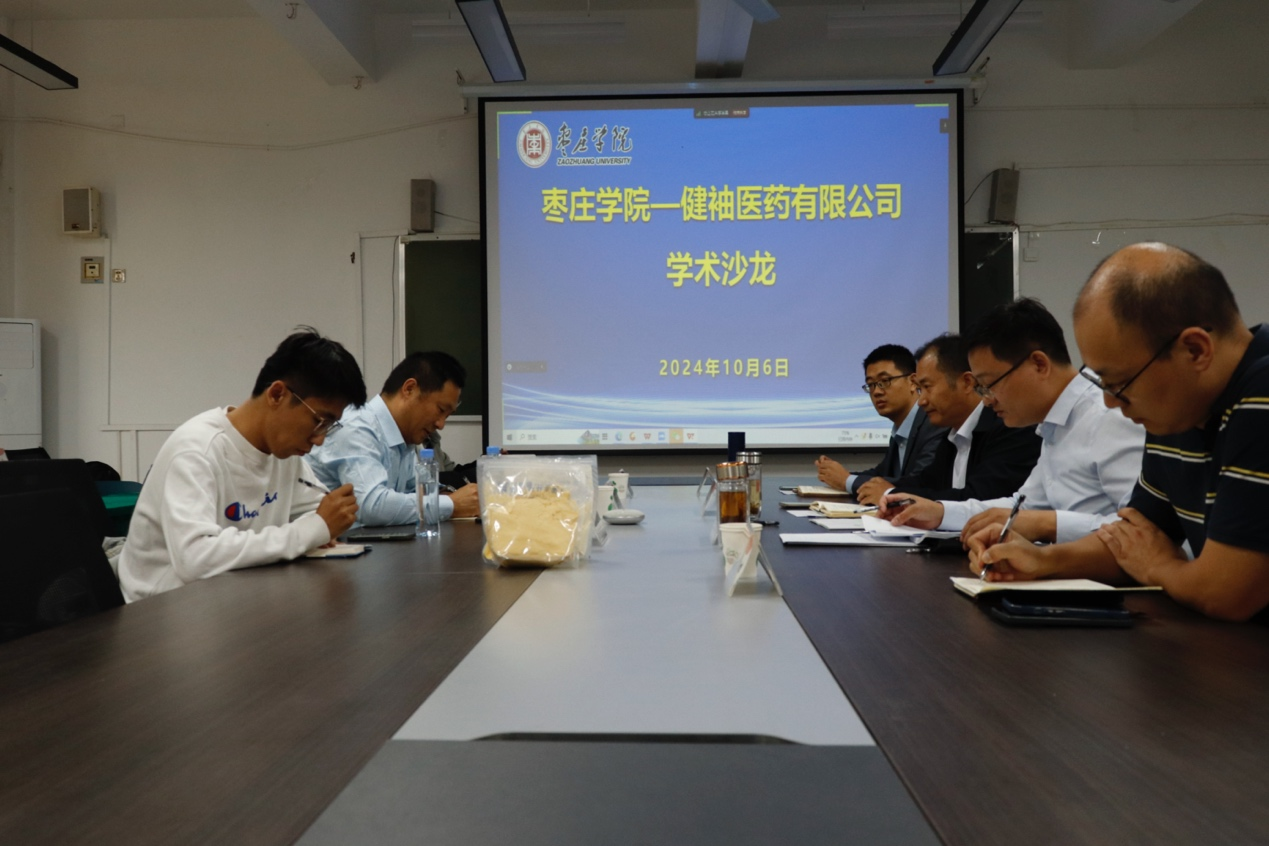舒德伟董事长介绍了枣庄健袖生物医药有限公司基本情况、产品及技术需求。王京龙院长介绍了beat365唯一官方网站的师资队伍、专业设置、人才培养、学科建设等基本情况。