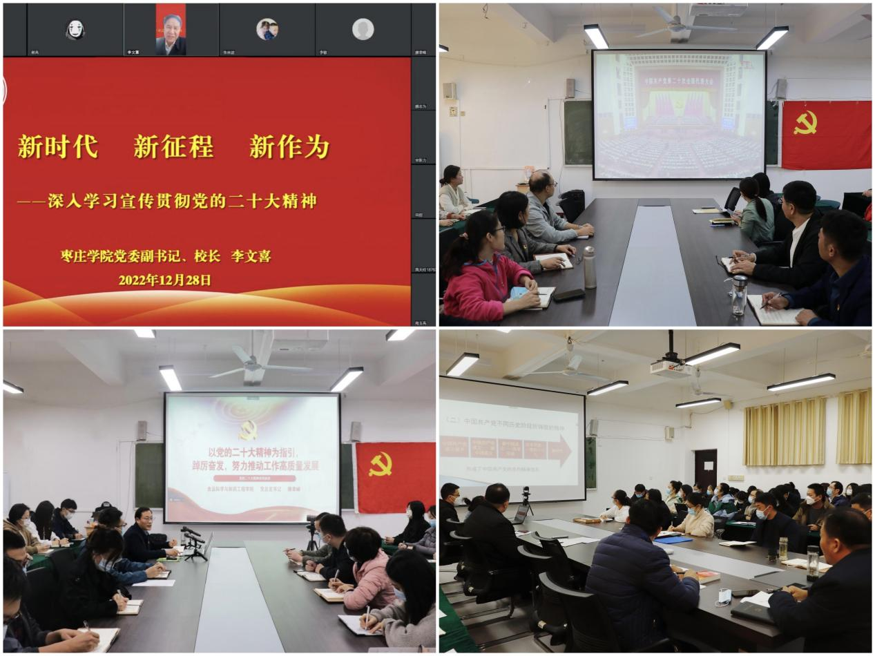 10月16日至22日,学院积极组织广大师生通过多种方式收听收看开幕会、闭幕会直播,学习热议党的二十大精神。随后,根据学校党委统一部署,结合学院工作实际,出台《beat365唯一官方网站学习宣传贯彻党的二十大精神工作实施方案》,制定宣讲计划,开展学习培训,分层分类,有效推动党的二十大精神入脑入心。12月28日,校党委副书记、校长李文喜为学院全体教师党员作了题为《新时代 新征程 新作为——深入学习宣传贯彻党的二十大精神》的宣讲报告,学院领导班子开展系列宣讲活动4次,受众师生1000余人次,着力推进舆论宣传和理论研究阐释,切实把学习成果转化为推动学院各项事业高质量发展的实际成效。