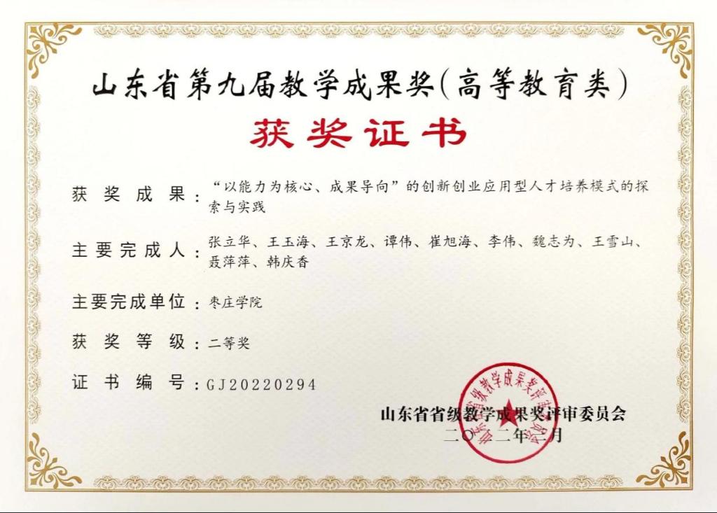学院以培育校级教学改革项目为基础,以申报省级教学改革项目为突破,不断凝炼教学成果,服务本科教学。本年度,获批山东省教改面上项目1项,获批教育部协同育人项目9项,校级教改立项3项,发表教研论文11篇。学院注重教学成果奖的培育。贯彻OBE理念,聚焦学生创新创业教育,打造了“7项综合能力为核心、7种创新成果为导向、7种综合训练为路径”的“777”创新创业应用型人才培养体系,构建了“以能力为核心、成果导向”的创新创业应用型人才培养模式。该成果荣获第九届省级教学成果奖二等奖。