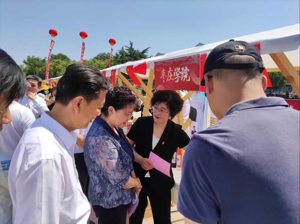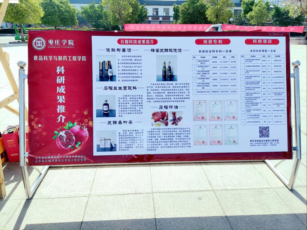 推介会现场,市政协副主席艾百灵、市政府秘书长王启栋、市科技局副局长国际昌、峄城区科技局局长顿星芳等领导在枣庄学院的展位前,参观了食药学院研发的树莓酒、石榴益生菌饮料、石榴籽软胶囊等农业科技成果。专家领导充分肯定了学院在石榴等地方农业资源开发等方面做出的贡献,高度评价了学院在乡村振兴和服务地方中发挥的重要作用。