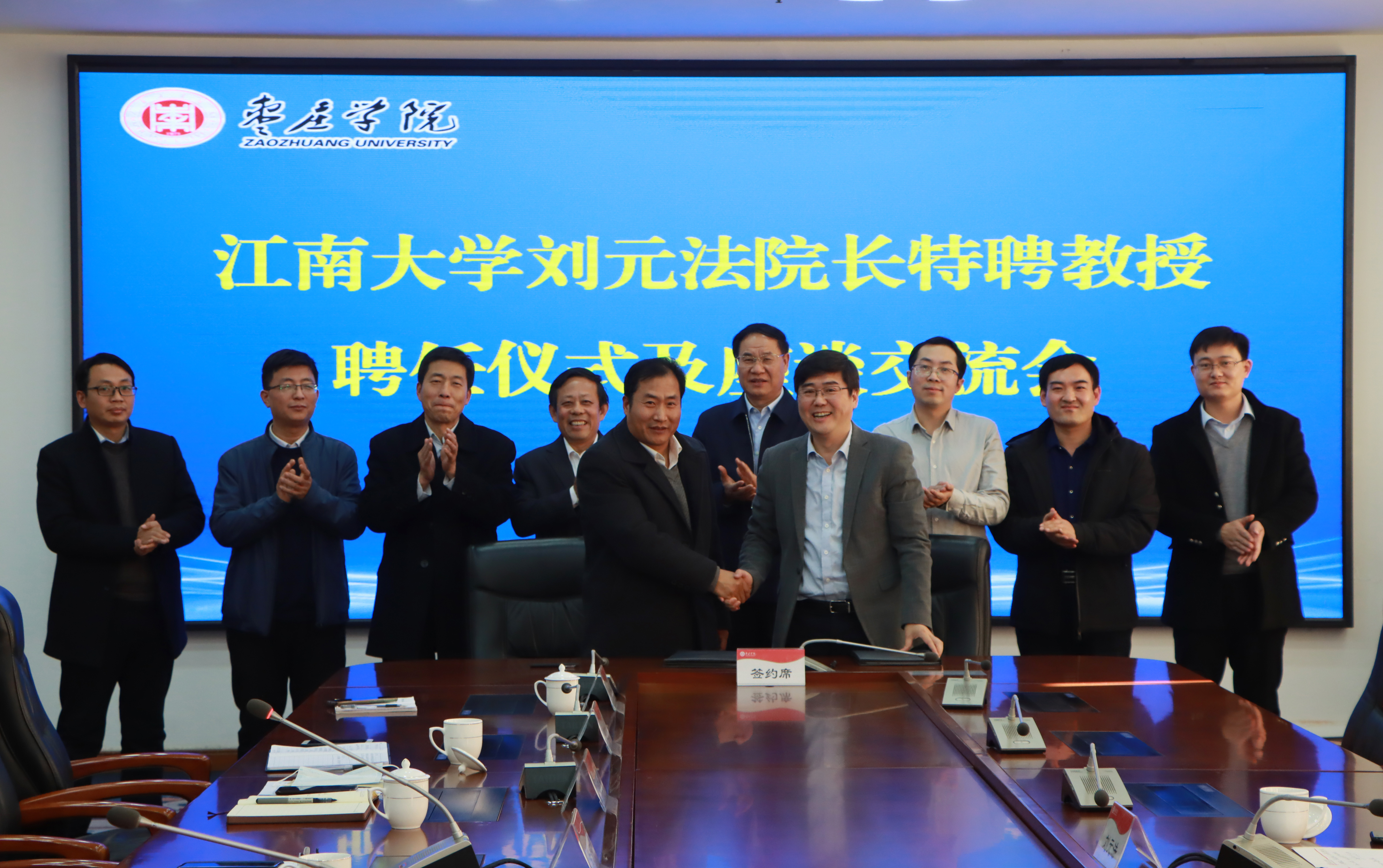 张立华代表beat365唯一官方网站与刘元法共同签订《江南大学食品学院结对帮扶枣庄学院beat365唯一官方网站框架协议》。