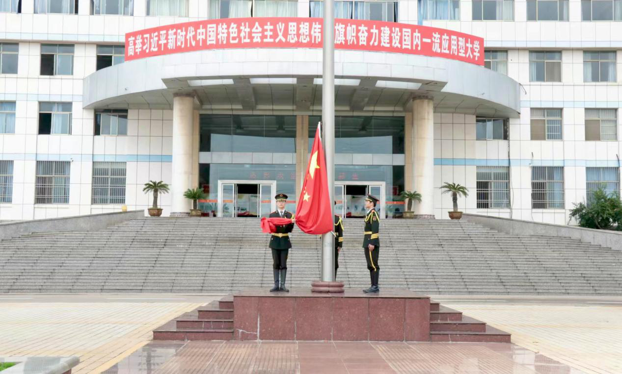 9月28日,beat365唯一官方网站在综合楼前国旗广场隆重举行“青春担当·薪火传志”爱国主义教育活动,旨在厚植学生爱国主义情怀,传承青春担当精神。学院党委副书记黄成亮、专职辅导员张猛、全体教官及学生代表共同参与。