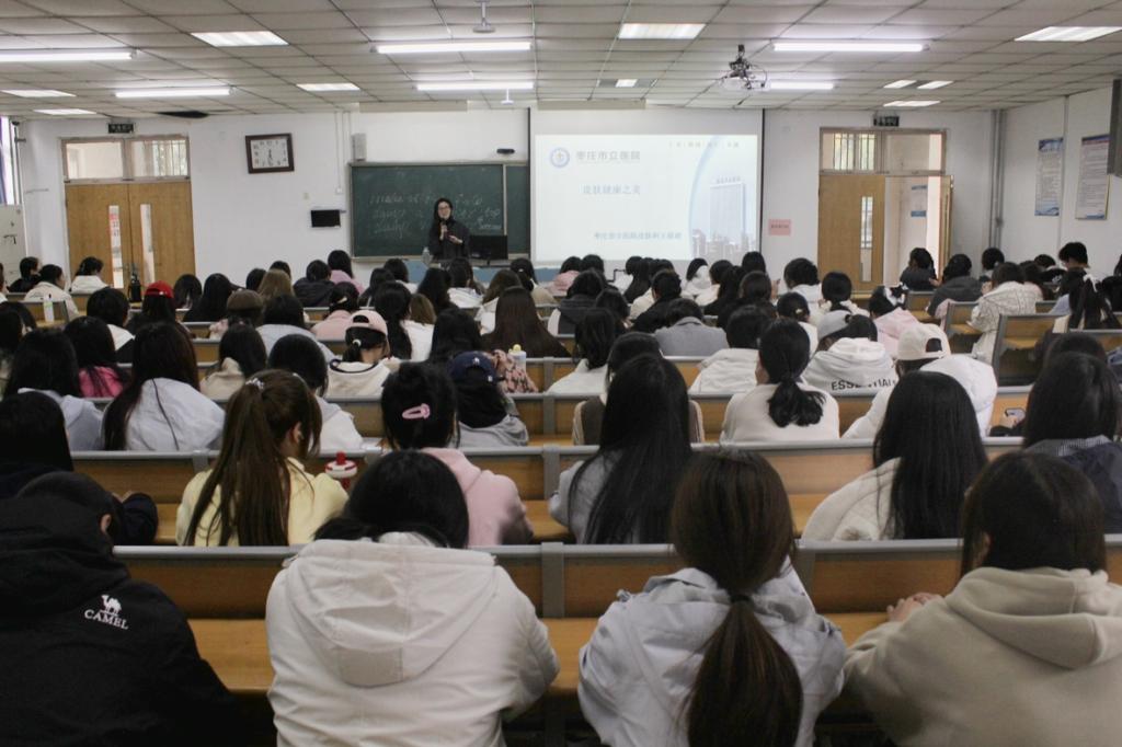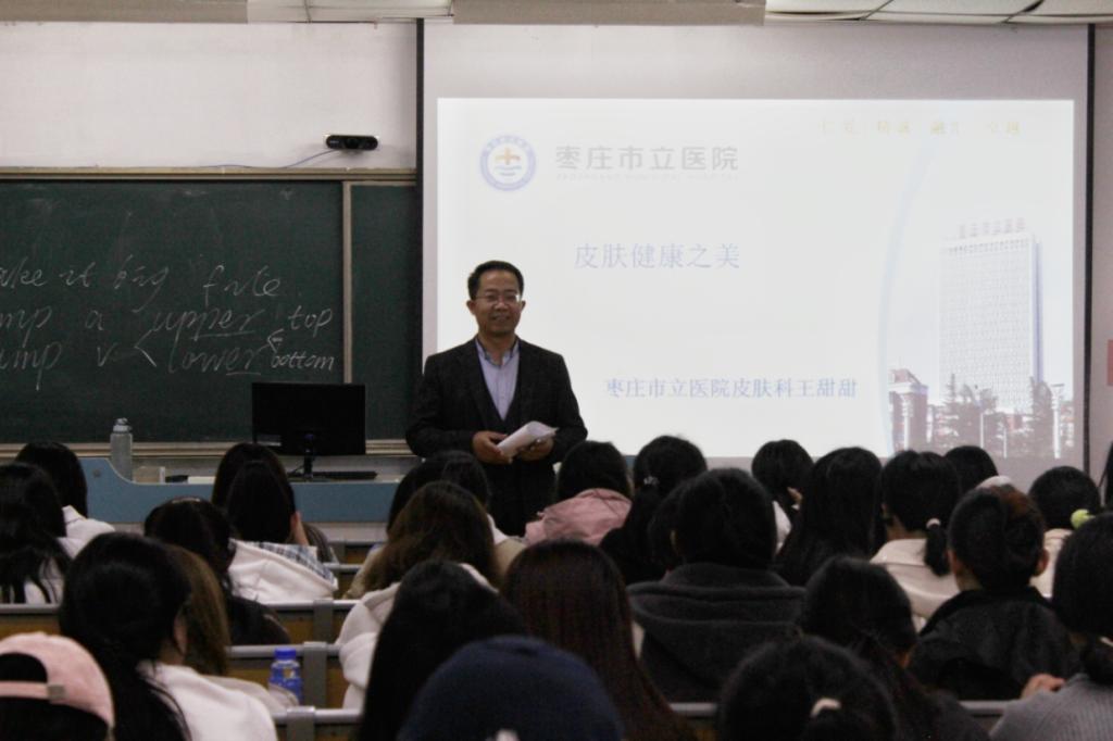 为切实关注大学生身心健康,普及皮肤健康知识,引导学子树立科学护肤观念,11月3日下午,beat365唯一官方网站在多媒体楼106教室举办了一场以“皮肤健康之美”为主题的专题讲座。本次讲座特别邀请了枣庄市立医院皮肤科副主任医师王甜甜博士担任主讲嘉宾,吸引了近百名学生积极参与。此次讲座由学院党委副书记黄成亮主持。