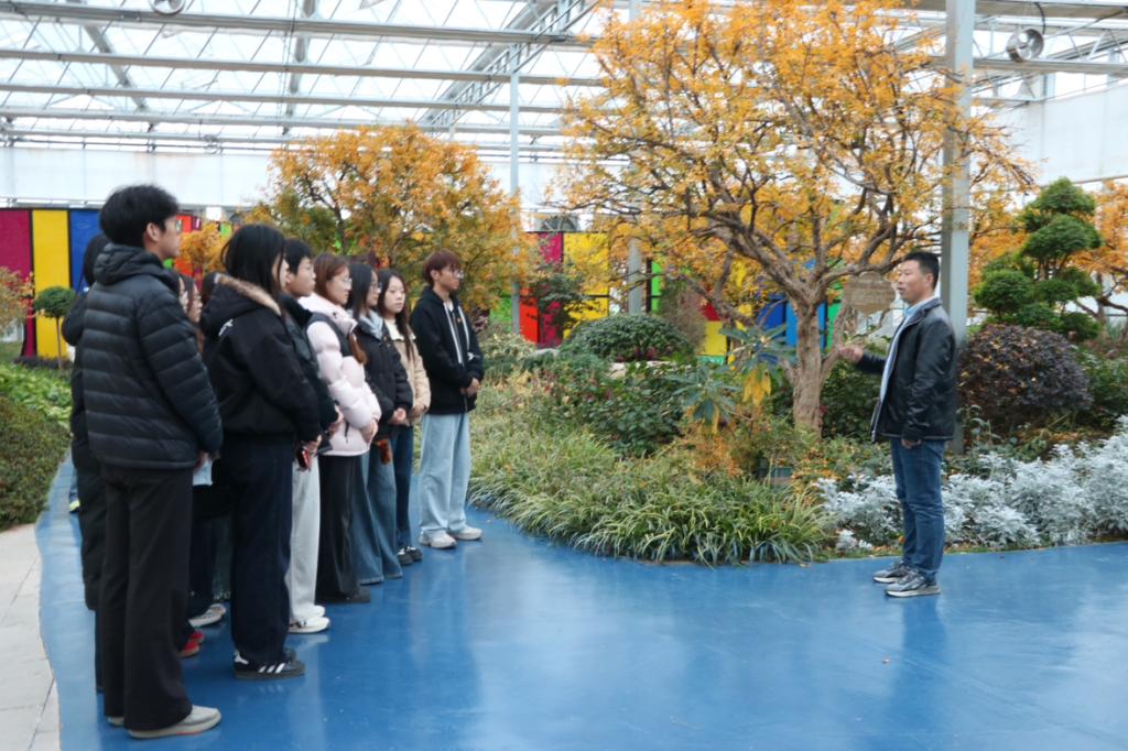 随后,学院党委副书记黄成亮以石榴园为课堂,带领师生党员重温石榴产业发展背后的深厚脉络。他从枣庄石榴千年的种植历史讲起,将张骞出使西域、引入石榴的文明交融故事与当代实践紧密联结。黄成亮指出,通过科技赋能、品牌打造和全链融合,小小石榴已成长为富民强农的大产业,这正是乡村振兴战略在基层实践的生动写照,是习近平新时代中国特色社会主义思想落地生根、开花结果的真实缩影。
