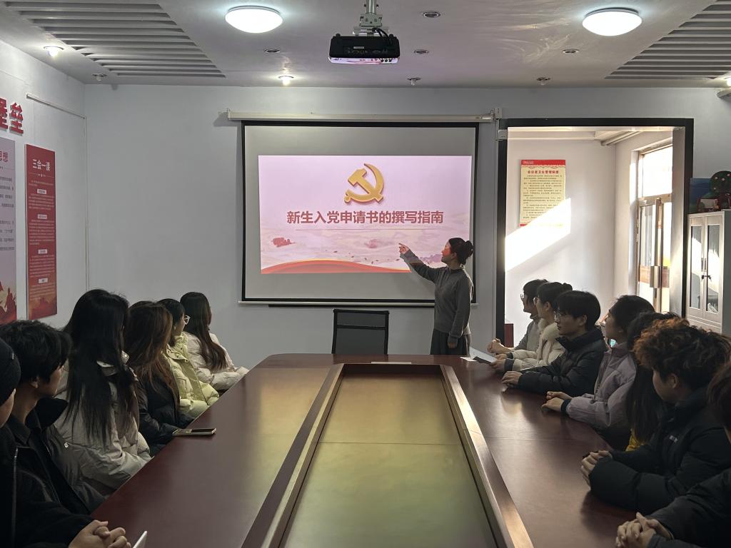 培训会上,田甜老师以“新生入党申请书的撰写指南”为切入点,结合入党流程、思想要求和文书规范,为同学们进行了系统讲解。她不仅细致拆解了入党申请书的格式框架、内容要点与注意事项,还结合鲜活案例,引导同学们思考“为什么入党、为谁入党”的核心问题,鼓励大家在思想上积极向党组织靠拢,在行动中践行党员标准。
