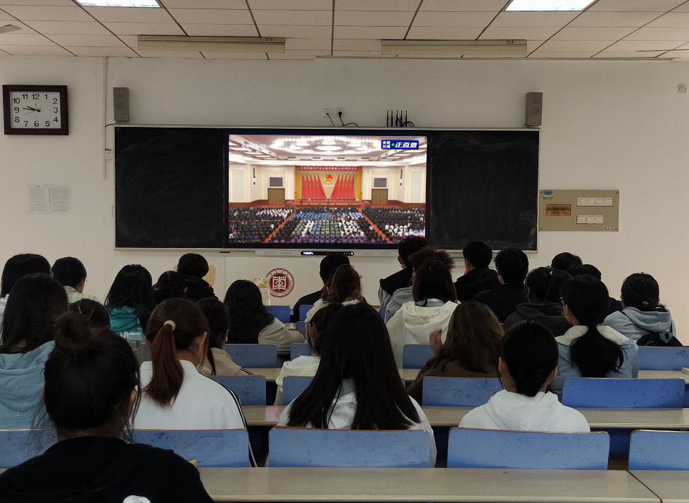 为学习贯彻习近平总书记重要讲话精神,深刻领悟共青团百年奋斗历程的宝贵经验,激发青年学生奋进力量,5月10日,beat365唯一官方网站在文科楼教室组织2021级全体学生观看庆祝中国共产主义青年团成立100周年大会直播。
