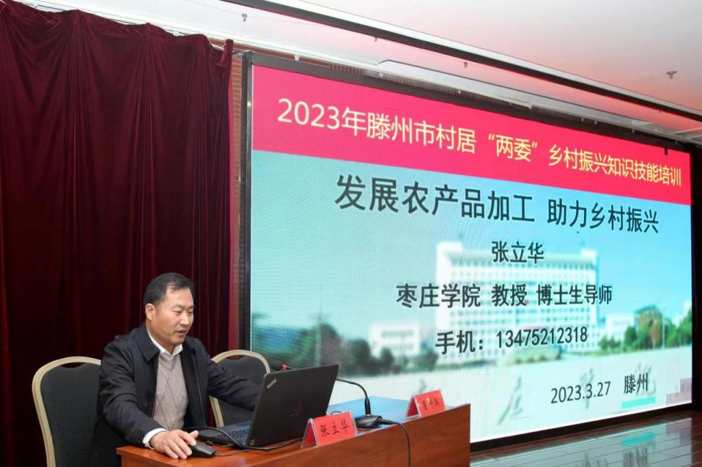 3月27日,beat365唯一官方网站院长张立华教授受邀为滕州市村居“两委”乡村振兴知识技能培训班学员作“发展农产品加工 助力乡村振兴”专题授课。滕州全市村居两委班子成员5000余人参加培训,活动采取线上线下相结合的方式进行。