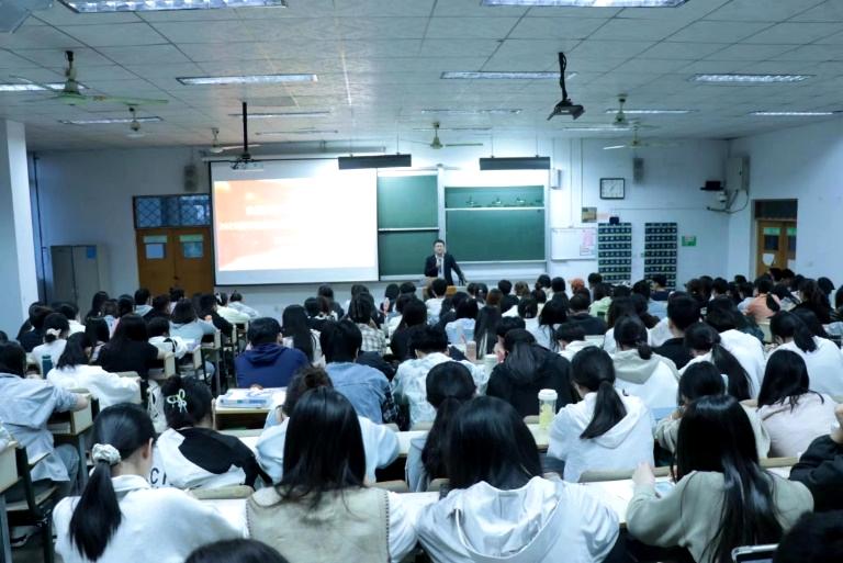 首先,王京龙介绍了近年来的考研趋势、学院考研成绩以及各专业录取情况,从教育强国建设和高等教育普及化等方面分析了当前研究生教育形势,从个人职业发展层面分析了考研的必要性和重要性。随后,副院长孙中贯从“为什么要考研”“如何选择考研学校和专业”两个方面向同学们分享了备考策略。