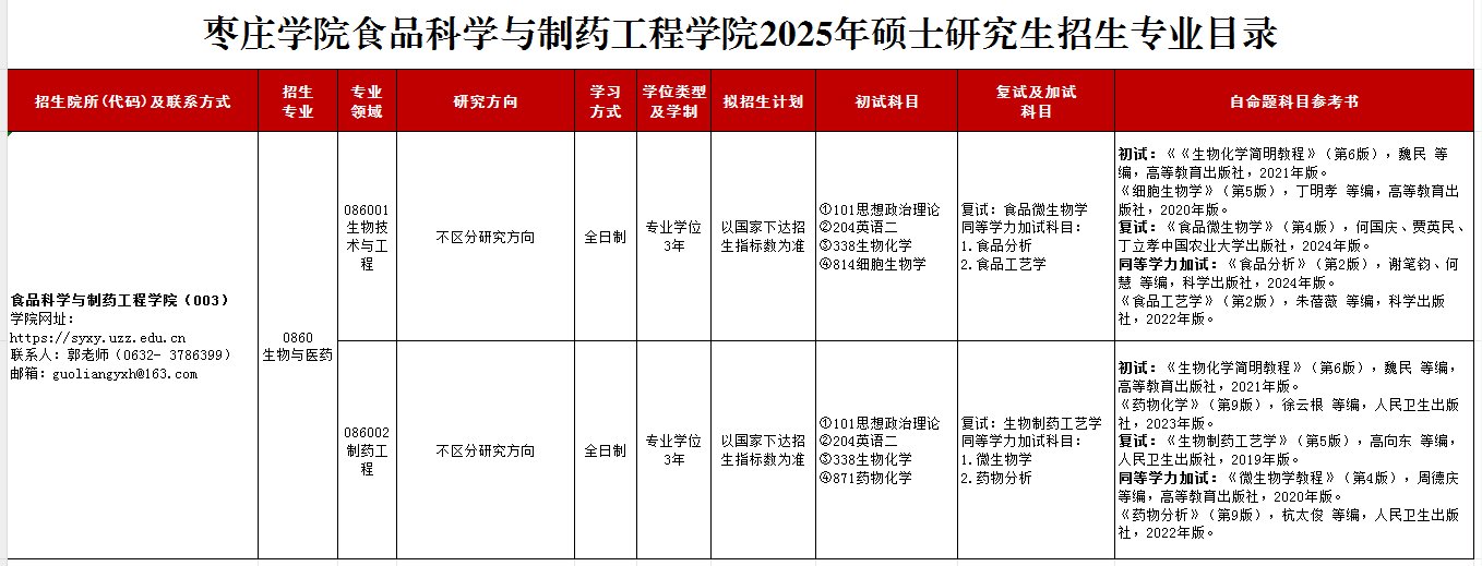 枣庄学院beat365唯一官方网站2025年硕士研究生招生专业目录