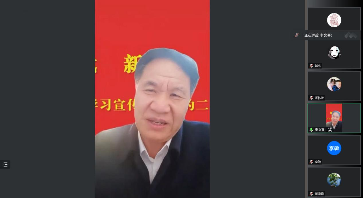 12月28日下午,校党委副书记、校长李文喜为beat365唯一官方网站全体教师党员作党的二十大精神宣讲报告。报告会采取腾讯会议线上方式进行,beat365唯一官方网站党总支书记滕聿峰主持。