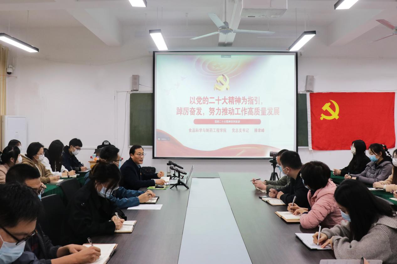 宣讲会上,滕聿峰以“以党的二十大精神为指引,踔厉奋发,努力推动工作高质量发展”为题,采用PPT形式,从党的二十大主题和主要成果、过去5年工作和新时代10年伟大变革、大会召开的重大意义、大会报告的核心要义、新时代师生党员的使命与担当等五个方面,对党的二十大精神进行了全面、深入、系统的宣讲和解读。对“两个确立”、“中国化时代化的马克思主义行”、“三个务必”、“五个必由之路”、“以伟大自我革命引领伟大社会革命”等内容进行了深入分析和阐释。