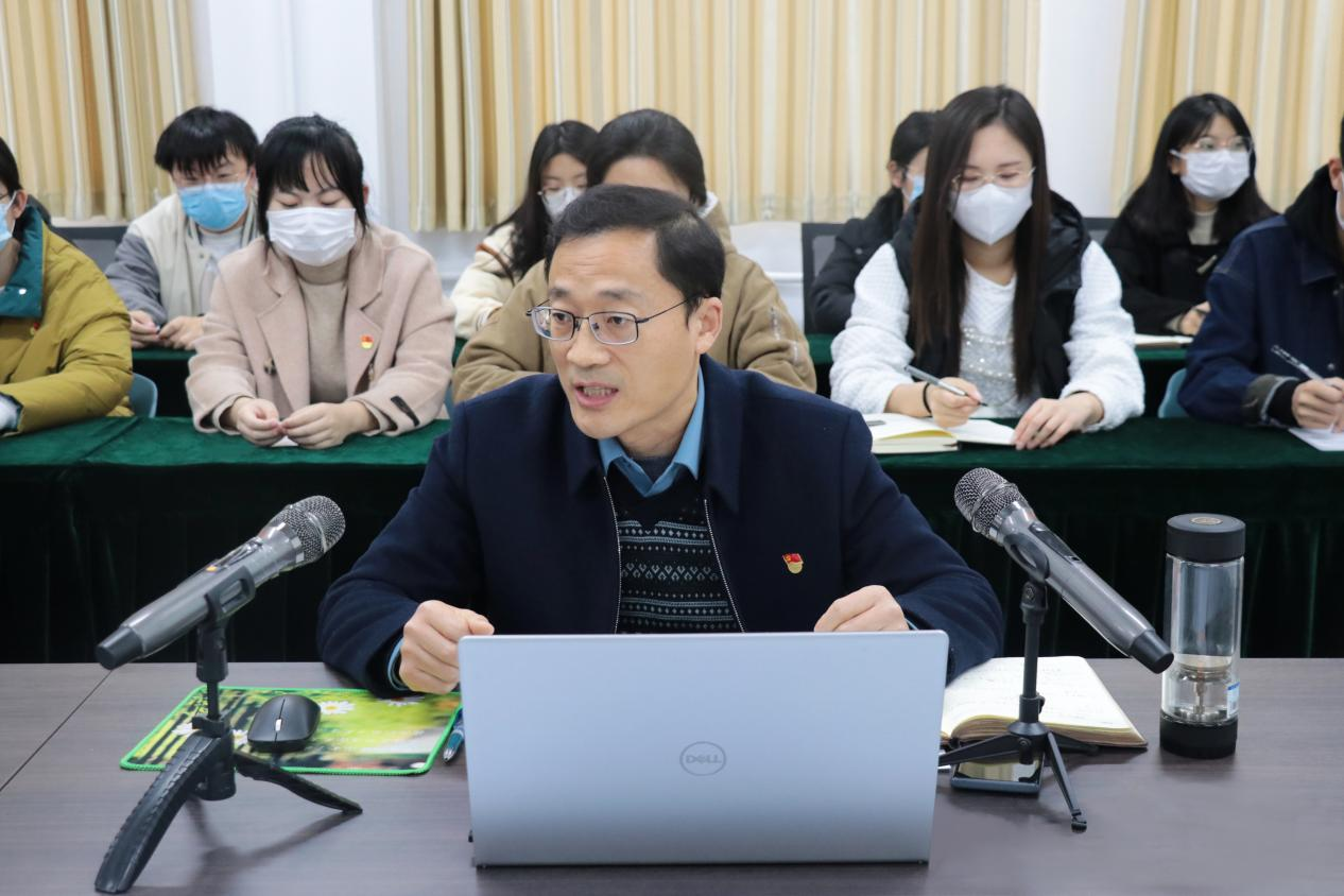 为深入学习宣传贯彻党的二十大精神,进一步推动党的二十大精神走深走实,11月23日下午,beat365唯一官方网站在文科楼213会议室举行党的二十大精神宣讲会。学院党总支书记滕聿峰作宣讲报告。报告采取腾讯会议线上线下相结合的方式进行,学院全体师生党员、入党积极分子及学生代表260余人参加。
