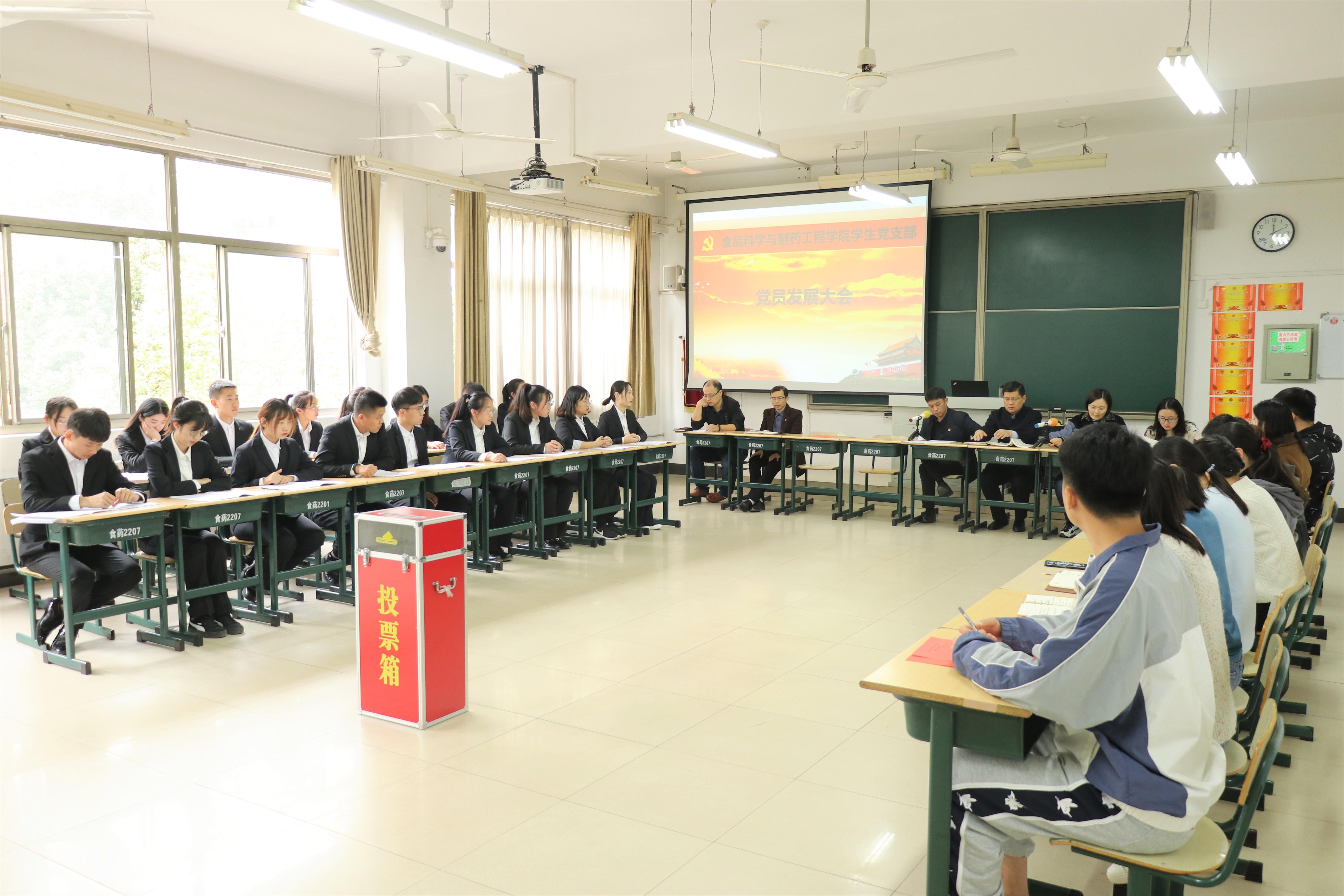 孙星代表学生党支部介绍17位同志的培养、政审、公示等情况,支部大会进行讨论,与会同志充分发表意见,最后针对这些发展对象是否符合入党的要求与标准,与会正式党员进行无记名投票表决。票决后,孙星宣读表决结果和支部大会讨论情况,大会决定张倩等17名同志顺利通过培养期考察,正式被党组织吸收为中共预备党员。