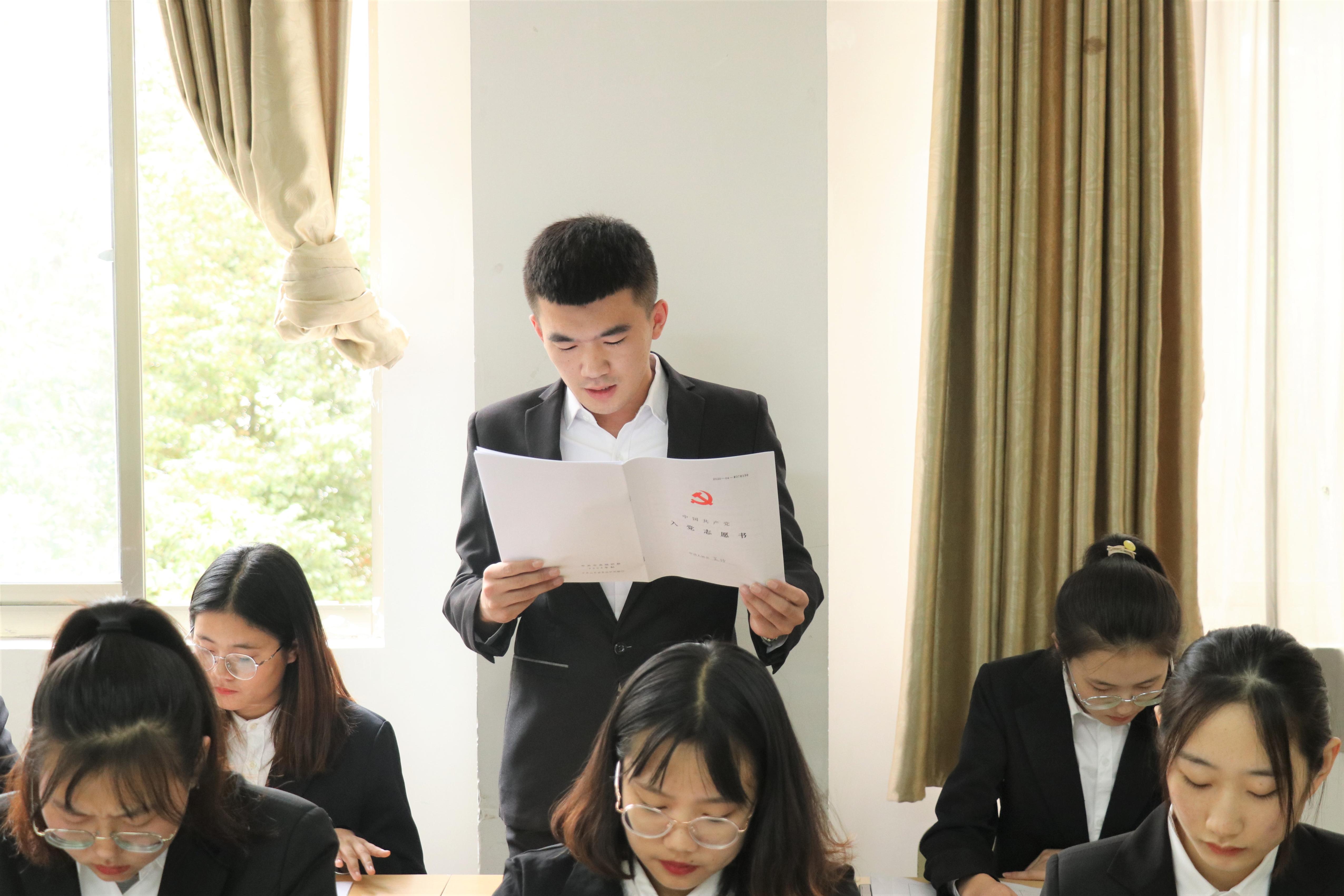 会上,张倩等17名发展对象分别宣读了本人的入党志愿书,汇报自己对党的认识以及学习、生活情况。接着,发展对象的入党介绍人说明其在考察期、预备期的思想、学习、工作和生活上的优缺点,以及今后需要改善和提高的地方,并对是否介绍其成为预备党员发表意见。