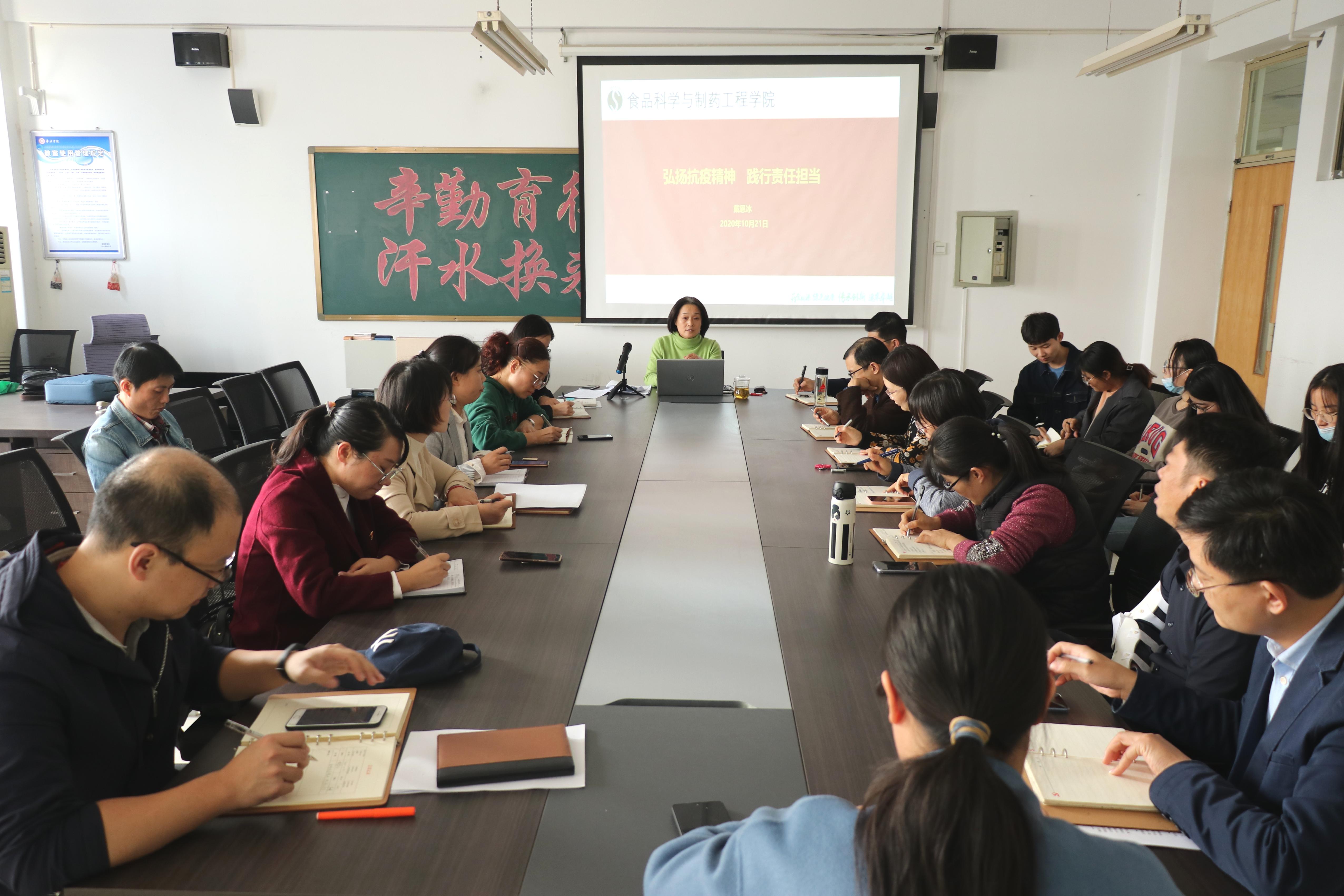 10月21日下午,beat365唯一官方网站在理工楼2301教室举办“弘扬抗疫精神,践行责任担当”专题党课,院党总支书记戴恩冰担任主讲,学院全体教工和学生党员参加党课学习。