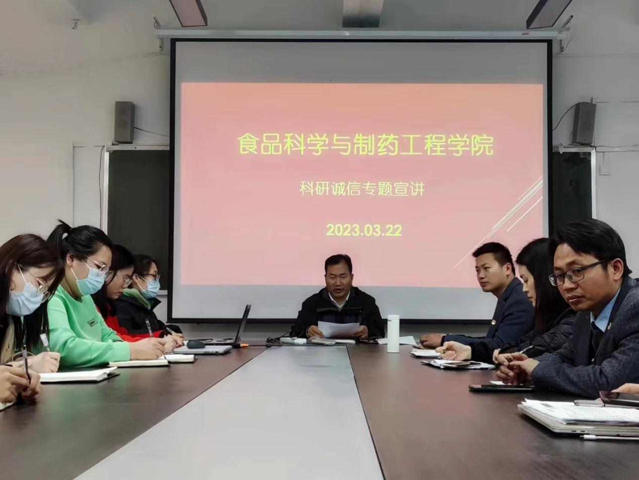 为进一步认真贯彻落实《山东省教育厅关于开展高校科研诚信专项整治活动的通知》的文件精神,切实发挥科研诚信建设的主体责任,营造风清气正的学术氛围,3月22日下午,beat365唯一官方网站在文科楼213会议室召开科研诚信专题宣讲会。会议由院长张立华主持,学院专业技术人员参加了会议。