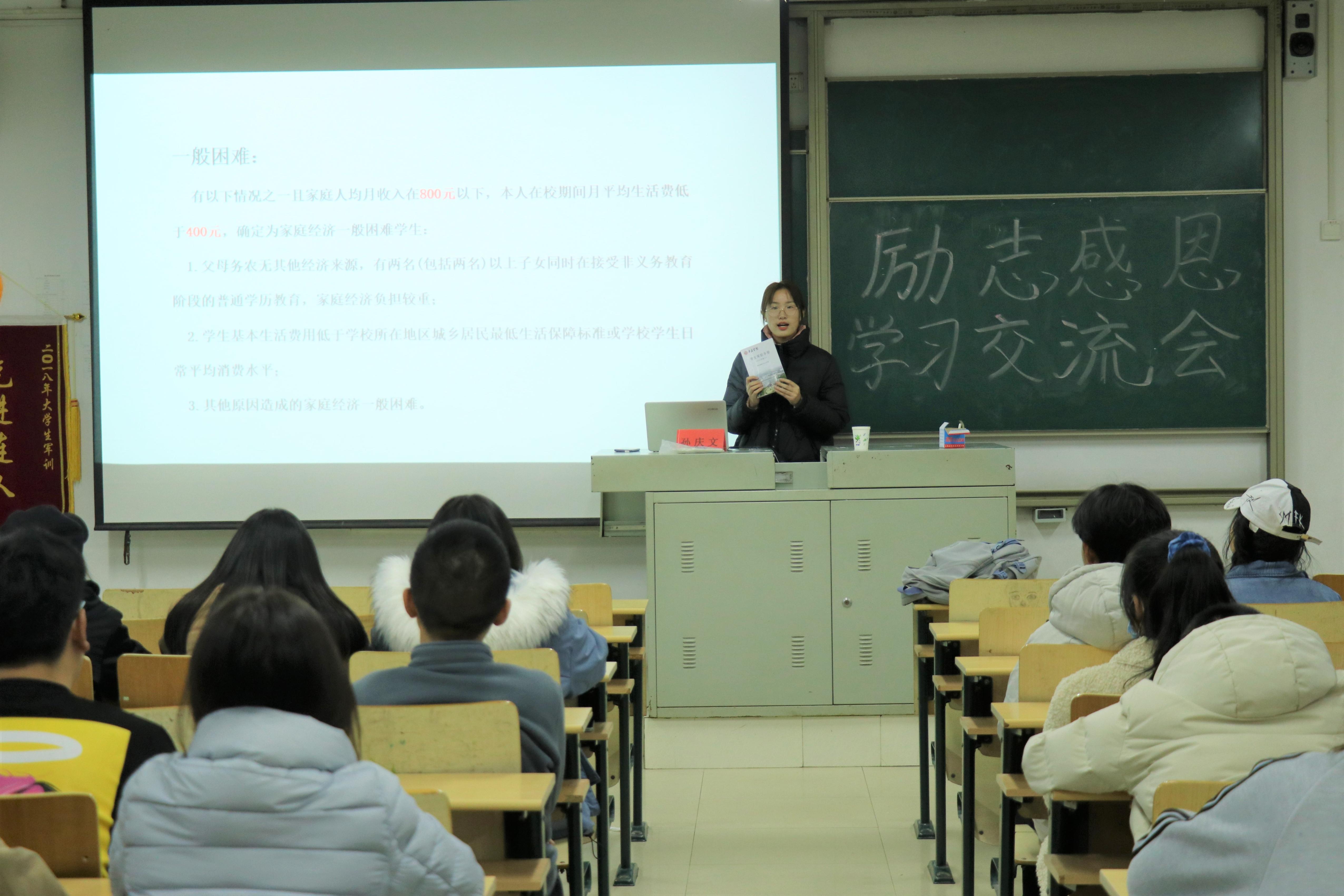 学院成立由国家奖学金、省政府奖学金、校长奖学金获得者和国家励志奖学金优秀学生代表组成的资助政策宣讲团。会上,宣讲团成员重点讲解了家庭经济困难学生认定、勤工助学管理办法、特殊困难补助、生源地信用助学贷款实施细则,详细解读了国家奖学金、省政府奖学金、校长奖学金、国家助学金、国家励志奖学金和省政府励志奖学金的申请条件、申请流程以及注意事项,使同学们对国家奖助政策有了更深的了解。接着,宣讲团成员以“感恩励志,不负韶华”为主题对同学们进行了感恩励志教育,激励大家要常怀感恩之心,感恩国家、社会和学校的关怀与帮助,用自己的实际行动努力奋斗,砥砺前行,以优异的成绩回报国家和社会。另外,他们结合自身经历体会,分享成功经验和行之有效的学习方法,与同学们互动交流,解答同学们的疑问。