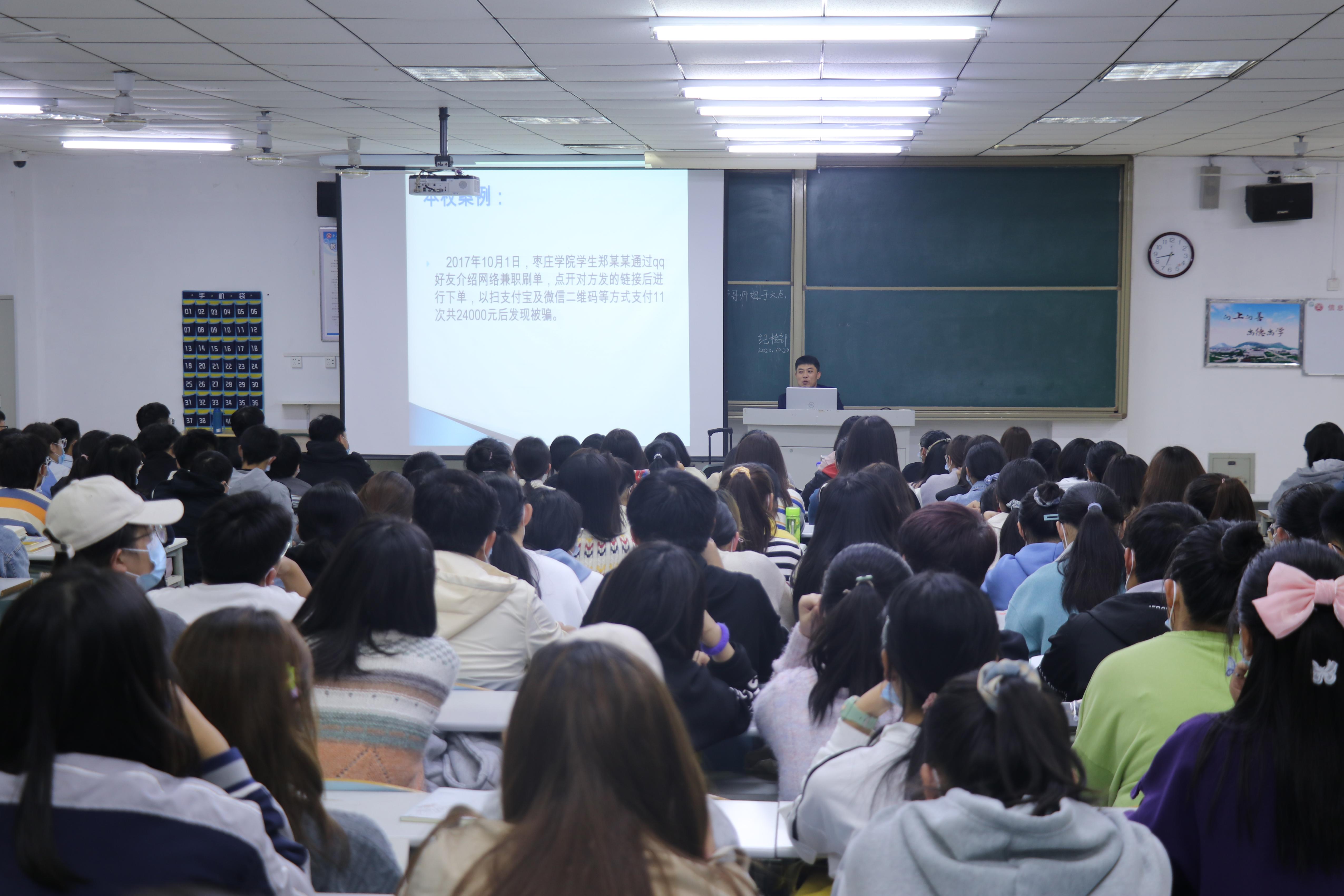 为了提高新生安全防范意识,杜绝校园诈骗情况的发生。10月20日晚,beat365唯一官方网站在理工楼2106教室开展2020级新生安全教育。院团总支书记孙星担任主讲,全体2020级新生参加会议。