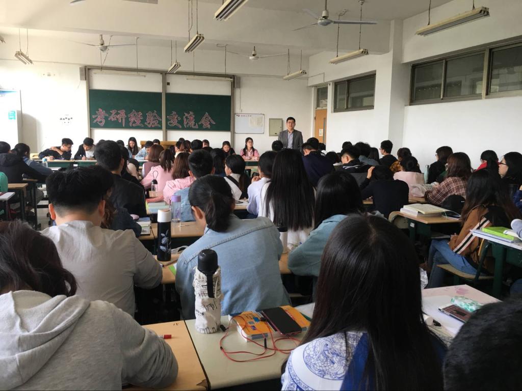 20日下午,各专业分别进行考研经验交流。优秀学生代表针对自己专业的特点提出更具针对性、更加合理细致的考研建议,他们告诫师弟师妹们要根据自己的兴趣和能力理智选择专业和学校,制定出适合自己的学习计划,早做准备,多做真题,放平心态,顽强拼搏。