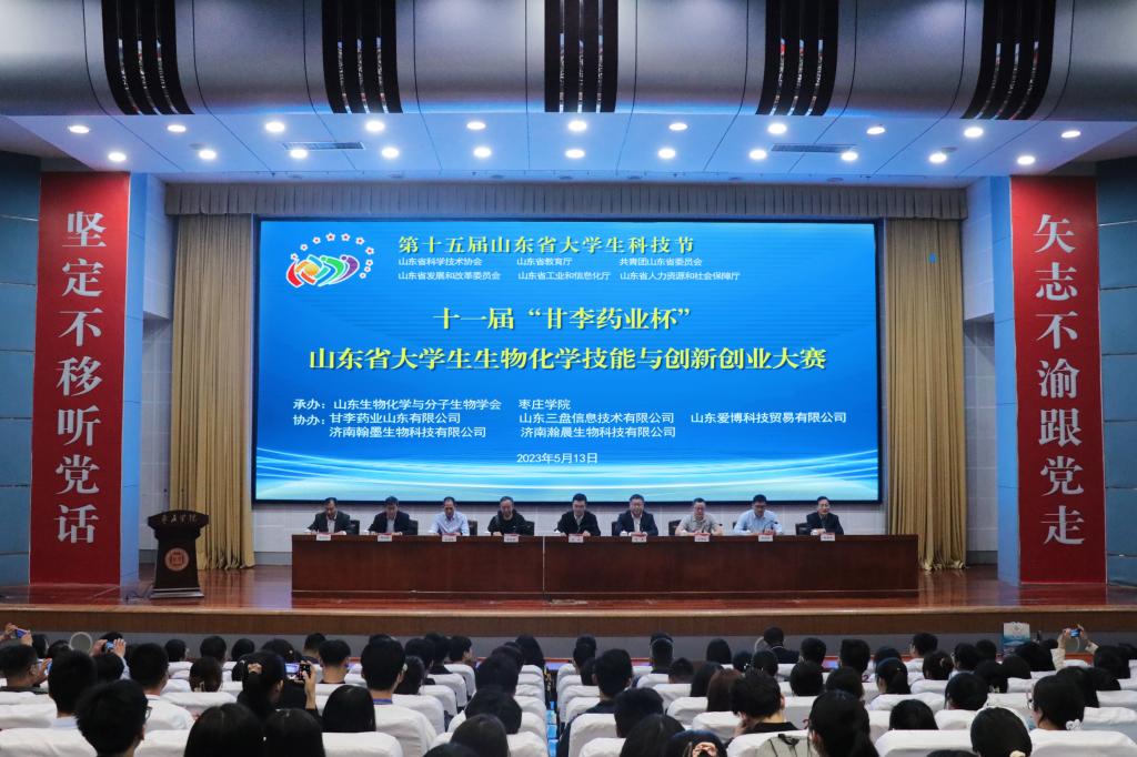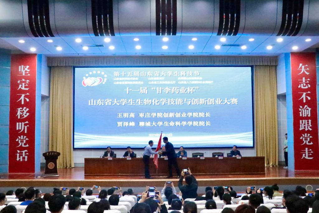 5月13日,第十五届山东省大学生科技节——第十一届“甘李药业杯”山东省大学生生物化学技能与创新创业大赛决赛在我校举行。山东生物化学与分子生物学会副理事长王林、山东生物化学与分子生物学会专职副秘书长王世立,校党委委员、副校长丰雷,甘李药业人力资源总监刘常军出席大赛开幕式并分别致辞。校党委委员、宣传部部长张昌林出席闭幕式并致辞。学校创新创业学院、beat365唯一官方网站、生命科学学院党政负责人共同出席。