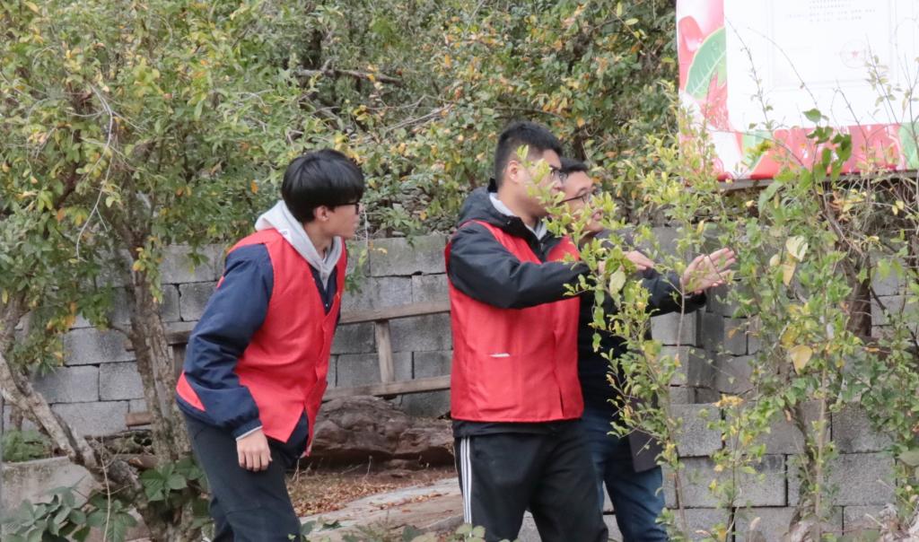 活动中,社会实践服务队成员们身穿红色马甲,手持垃圾钳、垃圾袋、扫帚等卫生工具分组协作,首先对道路花圃丛生的杂草和范围内散落的生活垃圾、枯枝烂叶等各类垃圾杂物进行清扫。经过社会实践服务队成员们一丝不苟地清扫下,石榴科技小院变得干净整洁,焕然一新,充分体现了大学生崇尚劳动、热爱劳动、辛勤劳动、诚实劳动的劳动精神,塑造了良好的青年形象。其次,滕聿峰同社会实践服务队成员参加了枣庄学院“石榴科技小院”成立暨揭牌仪式,大家了解到“石榴科技小院”的成立是贯彻落实习近平总书记视察枣庄重要指示精神的具体行动,是科技助农的重要举措,为枣庄市农业农村发展提供了新动能,着力打通石榴产业人才培育、科技成果转化、技术服务、技术推广的“最后一公里”。