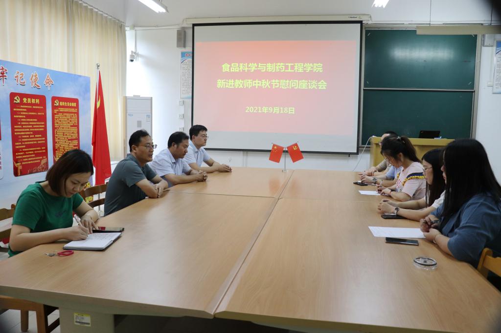 9月18日上午,beat365唯一官方网站在理工楼2220资料室举办新进教师中秋节慰问座谈会,学院党政领导和新入职教师参加座谈会。