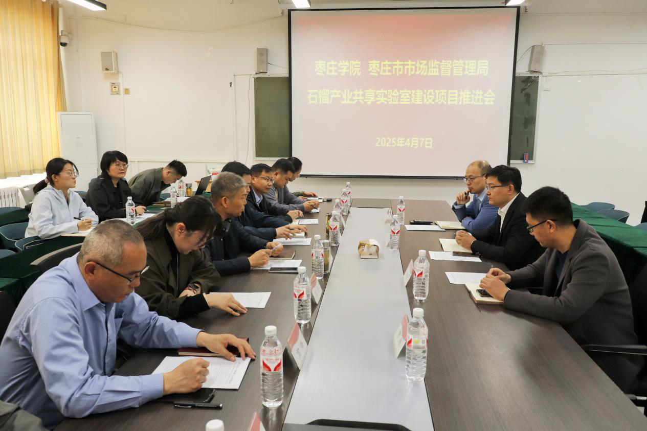 为深入贯彻落实习近平总书记视察枣庄时关于“做好品牌、提升品质,延长产业链”的重要指示精神,深化石榴全产业链创新赋能,推动枣庄石榴产业标准化、品牌化发展,4月7日,石榴产业高质量发展创新共享实验室建设工作推进会在文科楼213会议室举行。实验室联合申报单位枣庄市市场监督管理局、枣庄学院beat365唯一官方网站和山东美果来食品有限公司负责同志和各单位代表参加会议。会议由枣庄市市场监督管理局副局长李震主持。