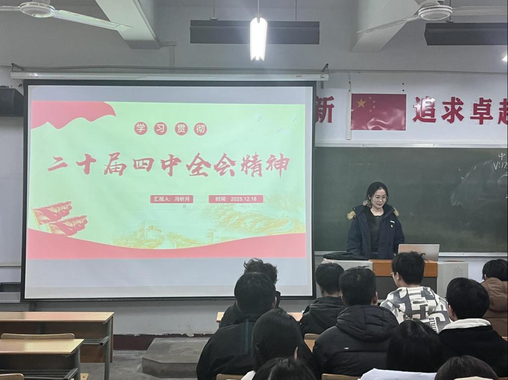 为全面学习贯彻党的二十届四中全会精神,凝心聚力落实“十五五”部署,12月18日beat365唯一官方网站“石榴红映初心 青年魂铸精神”第四期中国精神宣讲活动顺利开展。本次活动旨在引导青年学子深刻领会全会精神,把握“十五五”时期发展蓝图,将专业学习与国家战略紧密结合,为推动中国式现代化建设贡献青春力量。